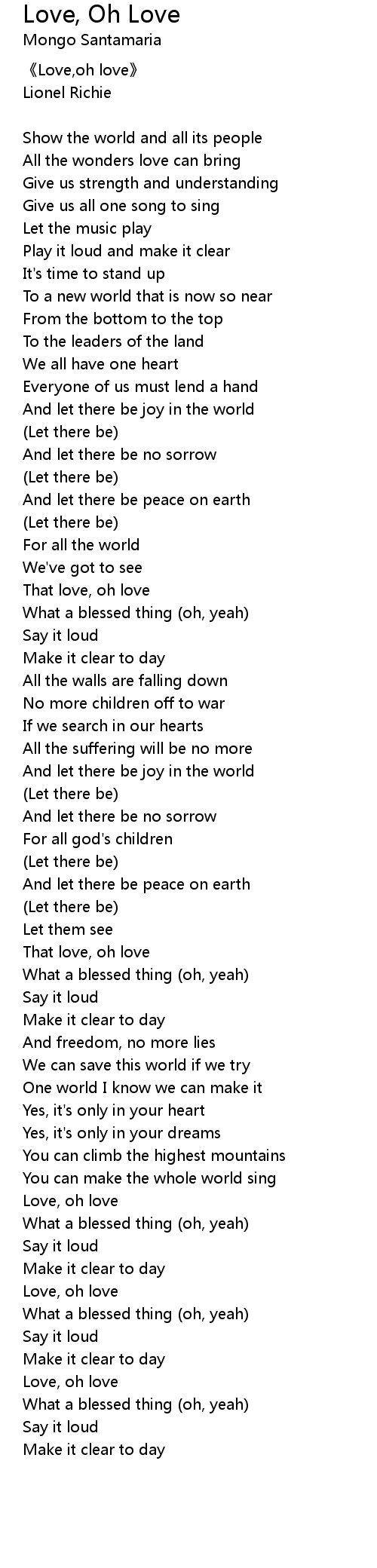 Oh Love Lirik : She Tells Him Ooh Love No One S Gonna Hurt You Love Lyrics Youtube : It’s a once in a lifetime.